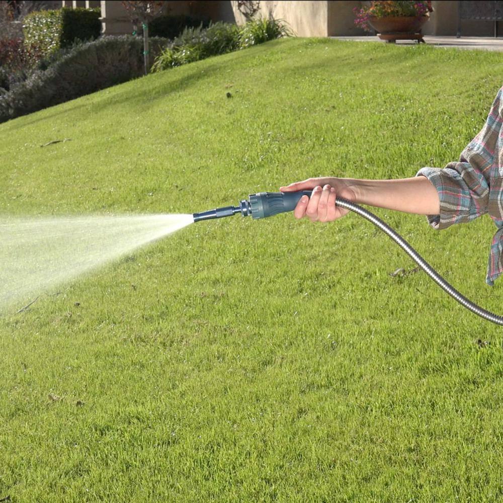 The included aluminum fireman-style twist nozzle can be adjusted for a host of applications - a fine mist for delicate plants or a powerful spray to blast away dirt from concrete. It may be he last lightweight hose you ever need to buy.