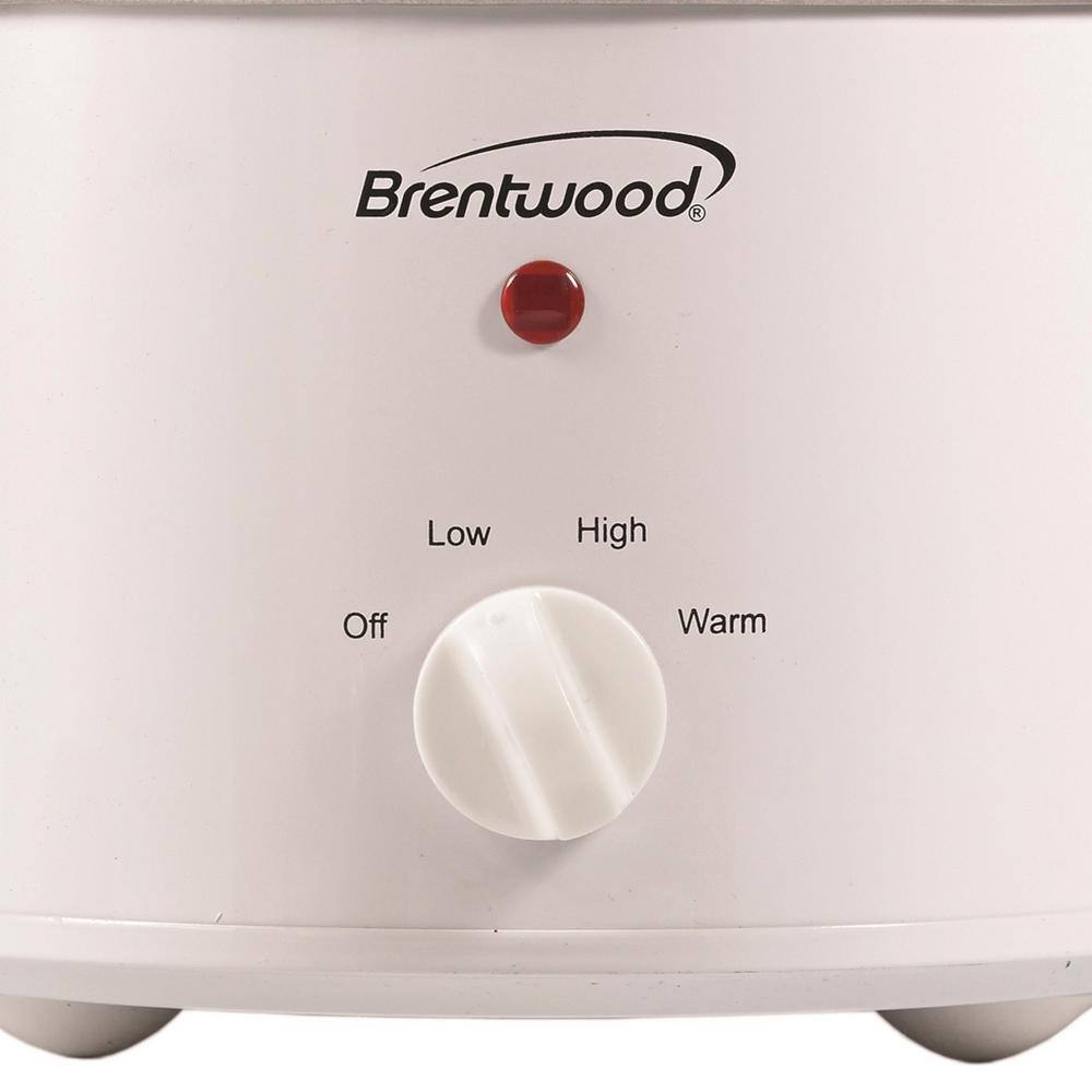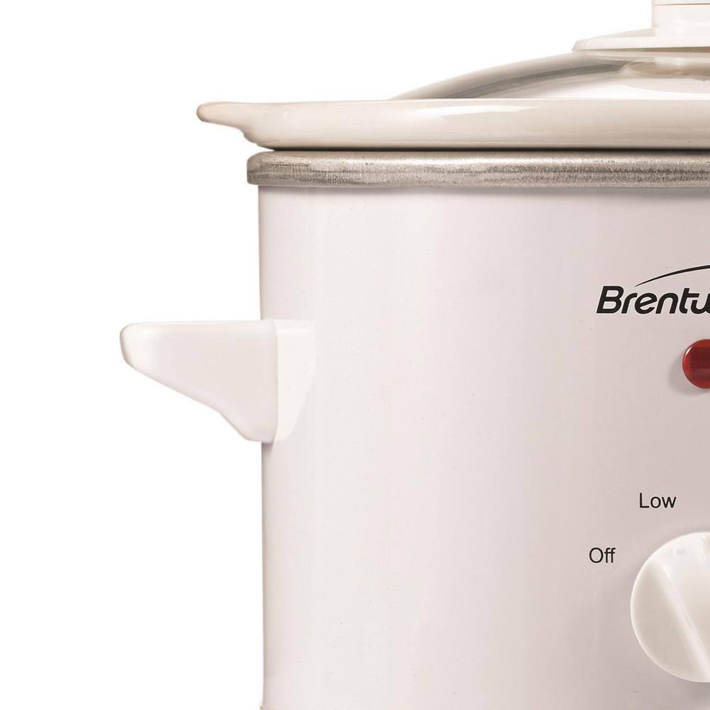 Let delicious meals cook themselves in the Brentwood Appliances SC-115W 1.5 Qt. Slow Cooker. It features a metal body and ceramic pot, allowing it to heat evenly and cook thoroughly. A tempered glass lid seals food in while it cooks andcool touch handles make it easy to transport or adjust the pot as needed. 3 heat settings let you customize the cooking level of your dish. This appliance has myriad uses and will quickly become a staple in your kitchen.