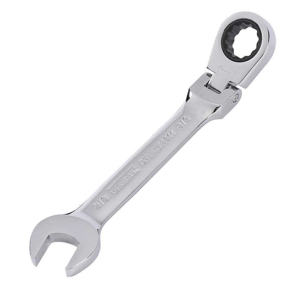 The DWMT74195 ratcheting wrench set is part of the DEWALT guaranteed tough line of Mechanics tools. This 7-Piece Ratcheting Flex Head Combination Wrench Set (SAE) is made with Chrome Vanadium Steel for added strength and durability. The wrenches include stamped markings for easy wrench size identification.