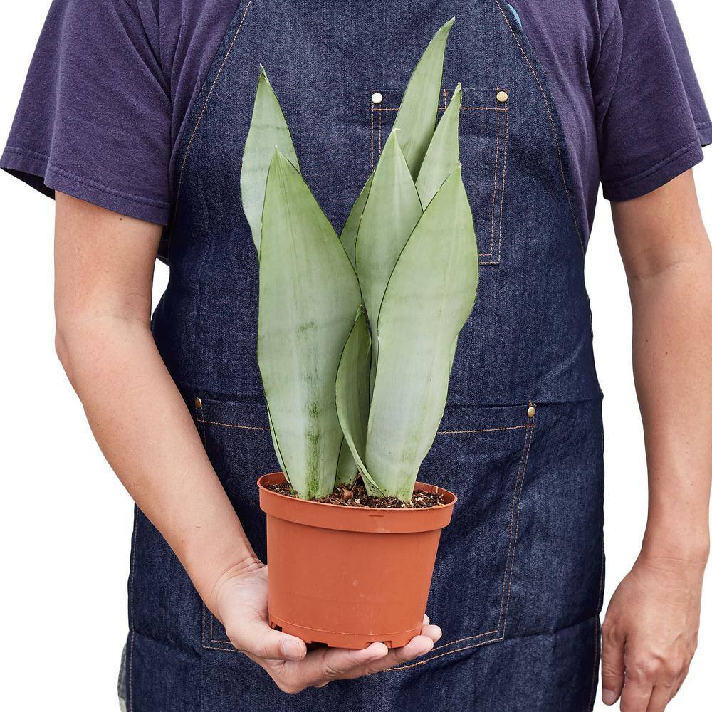 This evergreen perennial native to tropical West Africa and Nigeria, is a great addition to any office or household as a natural air purifier. Snake plants have strong and sturdy, sword shaped leaves which are drought tolerant and retains the plants water. This plant can be easily propagated by leaf cuttings so you can multi-ply your family of snake plants or give them away as a gift. This particular variety has a washed out greyish-green look on the entirety of the plant making this a very unique addition to any plant collection.