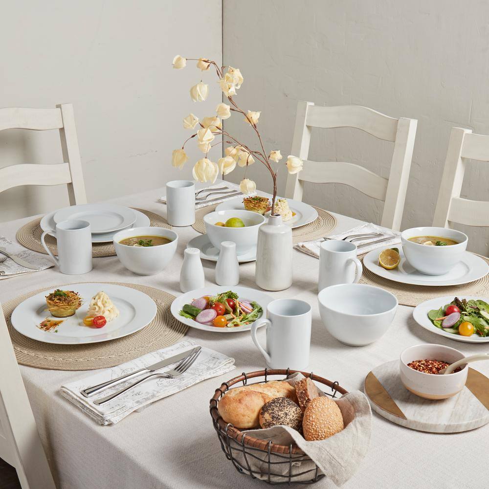 Bring stylish modern aesthetics and durable performance into your kitchen with the Round Rim dinnerware set. Add a simple, sophisticated touch of whiteware to your table setting with the Soleil 16-Piece Dinnerware Set. This durable and lightweight set is made using best-in-class ceramic, giving it the added convenience of being dishwasher safe, freezer safe and microwaveable.