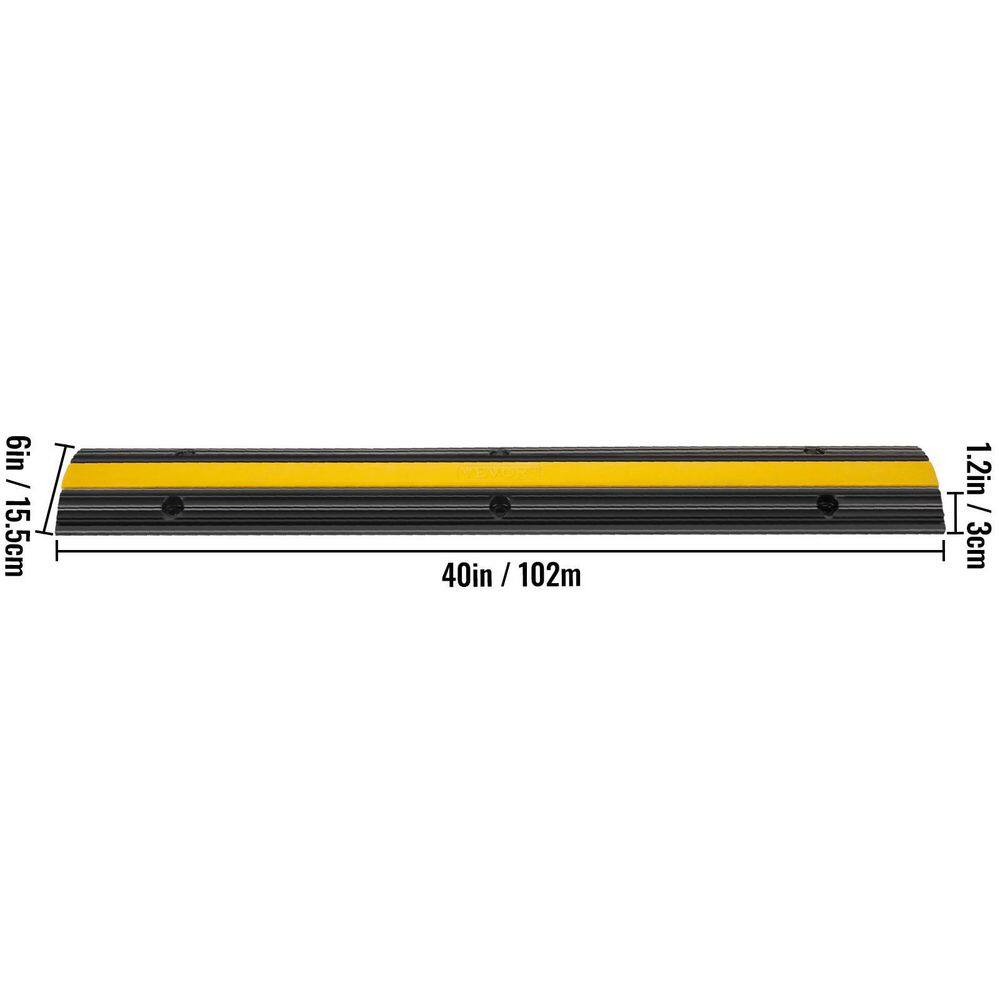 4-packs 1 channels: amount: 4-pieces, product size: 40 in. L x 6 in. W x 1.2 in. H, single channel size: 1.1 in. W x 0.8 in. H, cables protector ramp keeps various wires from getting damaged by foot traffic and vehicles, what's more, the speed bump is ideal for slowing down the speed of cars or trucks to create a secure driving environment for roads, parking lots and more